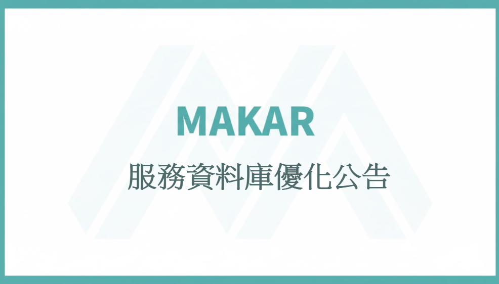 為了提供更穩定、高效的服務,MAKAR 將於近期進行服務與資料庫的全面優化作業。 本次優化旨在提升系統的穩定性與擴充系統資源,維護過程不會影響現有用戶之權益。 【重要提醒】 若於服務期間,偶